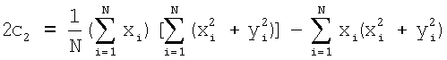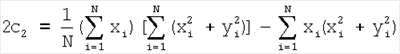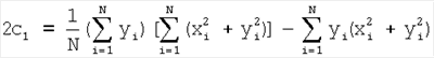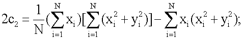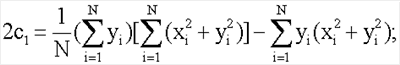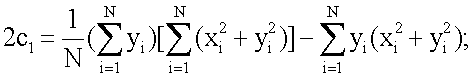 {xi, уi} – группа координатных отсчетов буксируемой антенны, равноудаленных от источника, сформированная для времени распространения навигационного сигнала tk при установленной ширине временного окна t; N – число координатных отсчетов принятых при расчете в k-той зоне дальности; i=1, N,