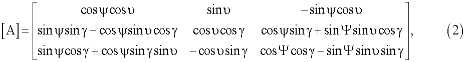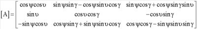 Используя теперь выражение (2) для матрицы направляющих косинусов через углы , , , получим окончательные выражения для этих углов