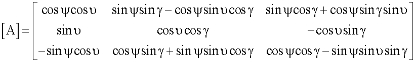 А – матрица направляющих косинусов, имеющая следующий вид,