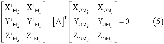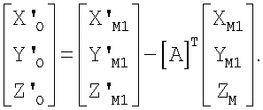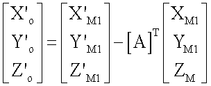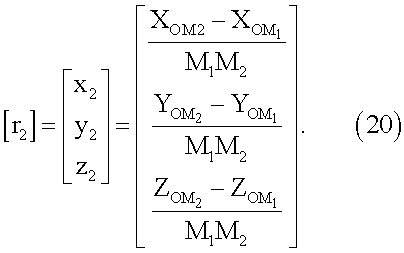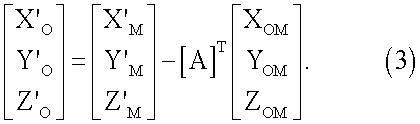 Используя выражения (8) (16) для коэффициентов матрицы [А], с учетом обозначений (20) соотношение (4) применяется для вычисления координат точки О в системе координат, связанной с летательным аппаратом, поскольку все величины, входящие в правую часть этого равенства, выражаются через измеренные величины.