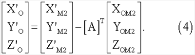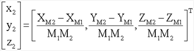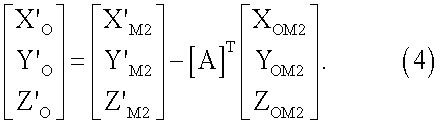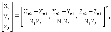 где вектор  – описывает положение маяка М2 в системе координат O‘X‘Y‘Z‘;