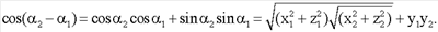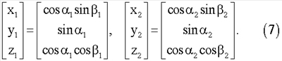 Положение каждого вектора r1 и r2 определяется парой углов 1, 1 и 2, 2. Координаты этих векторов выражаются следующим образом.