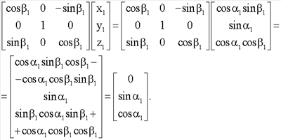 Умножим слева вектор r1 на матрицу поворота вокруг оси OY на угол 1, получим