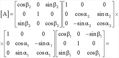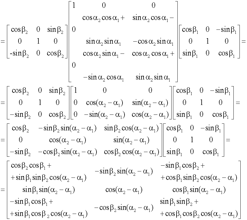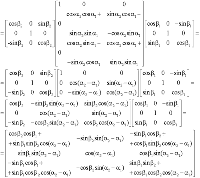 Эти преобразования позволяют сделать вывод, что матрица поворота А преобразующая произвольный вектор r1 в вектор r2 представляет собой произведение четырех матриц