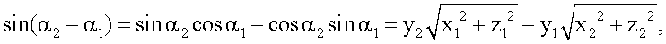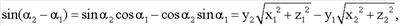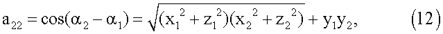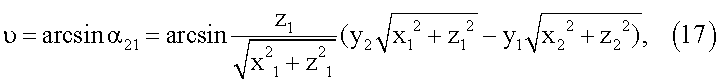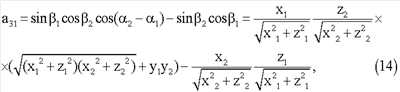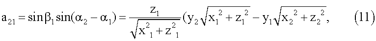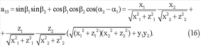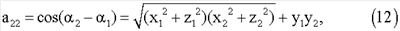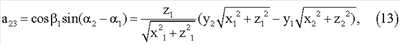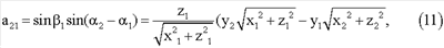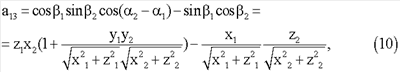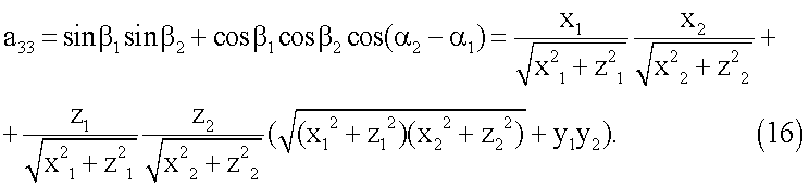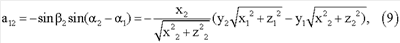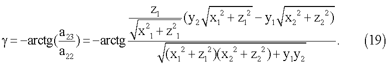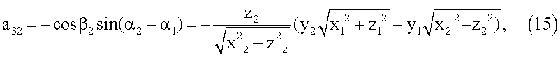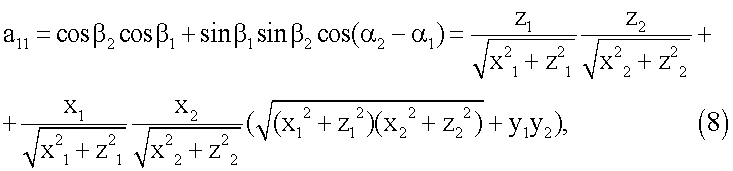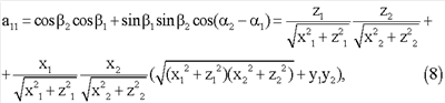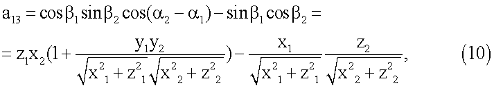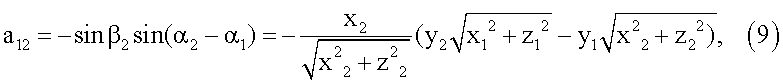 Чтобы выразить коэффициенты этой матрицы через известные компоненты векторов r1 и r2 необходимо воспользоваться соотношениями (7), из которых получим выражения для следующих тригонометрических функций