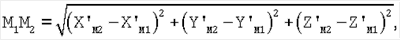 Приведем соотношение (5) к виду (6). Разделим обе части этого равенства на модуль вектора |M1M2|, получим