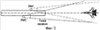 Известен способ [3] определения положения ЛА в пространстве с помощью мобильной лазерной системы, который состоит в формировании трех цветовых зон в окрестности посадочной траектории, как это показано на фиг.1, и визуальном восприятии летчиком излучения в заданной длине волны, по которой определяется положение ЛА относительно створа взлетно-посадочной полосы (ВПП). Каждый из лазерных маяков создает две непересекающиеся (прилегающие) цветовые зоны. Первый маяк ЛМ1 формирует желтую и зеленую зоны, а второй маяк ЛМ2 – зеленую и красную. Излучение маяков направляют так, чтобы линии прилегания цветовых зон первого и второго маяков были параллельны оси ВПП, при этом формируется центральная зона зеленого цвета – створная полоса и две боковые зоны желтого и красного цветов соответственно.