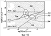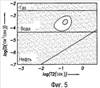 Согласно одному из вариантов реализации изобретения, сводный график фиг.3 не зависит от модели. Это означает, что для получения результатов ЯМР измерений из данных спинового эхо, в вычисления не вводятся заданные значения или пределы диффузии. Хотя существуют и другие примеры, один из примеров вычисления, независящего от модели, представляет собой ранее упоминаемый подход ПМЭ. На фиг.3, чтобы содействовать интерпретации ЯМР данных, перекрытие теоретических откликов воды, нефти и газа является полезным.