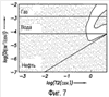 фиг.6 изображает другую карту ЯМР данных, показывающую неидеальные эффекты на ЯМР данных,