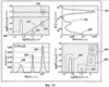 Фиг.14 иллюстрирует, согласно одному из вариантов реализации, пример подхода указания и щелчка, имеющий четыре артефакта флюидов 240, 242, 244 и 246, которые хорошо разделены в D-T2 пространстве (левая верхняя часть). Заметим, что четыре флюида не разрешены ни в T2 пространстве (левая нижняя часть), ни в D пространстве (правая верхняя часть). В частности, графики T2 и D пространства показывают три вместо четырех флюидов, имеющих различимые свойства. В нижнем левом T2 графике пик 248 соответствует артефакту 246, а пик 250 соответствует артефакту или проявлению флюида 244. Однако, пик 252 не может разрешить артефакты 240 и 242. В верхнем правом распределении диффузии пик 254 соответствует артефакту 240, а пик 256 соответствует проявлению флюида 242. Однако, пик 258 не может разрешить артефакты 244 и 246.