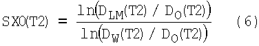 Второй подход для непосредственного определения количественных результатов из D-T2 карты применяет определение среднего логарифмического значения диффузии (DLM). При стандартном ОХФМР анализе необработанные данные аппроксимируются непосредственно, используя ограничения уравнений 1, 2 и 3. Подобные ограничения накладываются для других инверсий, независящих от модели, уровня техники. Альтернативный подход, раскрытый здесь, заключается в том, чтобы использовать сами карты в качестве входных данных для получения решения, которое пытается получить ОХФМР. Поскольку информация, содержащаяся в картах, по существу идентична таковой у исходных данных, должны быть сопоставимы два способа решения. Однако, на практике данных часто не хватает в информации диффузии, и, следовательно, D-T2 амплитуды различных флюидов размазываются по большим площадям карты (разрешение). Такая ситуация противоположна идеальной ситуации для применения способа указания и щелчка, в котором каждый артефакт флюида по существу является отделенным от других проявлений флюида. Тогда проблема состоит в повторном присвоении разброса амплитуды по оси диффузии флюидам различных пластов. Согласно указанному второму подходу, приблизительный способ выполнить это заключается в том, чтобы использовать геометрическое среднее значение скорости диффузии для каждого T2, обозначенное