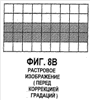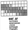 На фиг.8F представлено растровое изображение после того, как второй преобразователь преобразовал градационные значения передних и задних пикселей в направлении подсканирования в соответствии с параметрами коррекции изображений, показанными на фиг.8Е. На фиг.8G показано экспонированное изображение на носителе изображения для растрового изображения, полученного из коррекции градационных значений. Наклон основной линии сканирования устраняется, так что формируется горизонтальная прямая линия. За счет коррекции параметров преобразования градационных значений возможно предотвратить изменение плотности в изображении с мелкими деталями, появляющееся когда несовпадение корректируется электрически.
