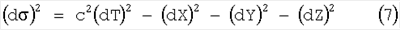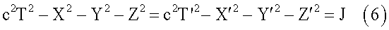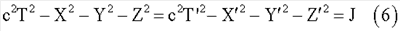 Интервалы событий, наблюдаемых в двух произвольных системах отсчета, исчисляют четырьмя координатами X, Y, Z, T и X’, Y’, Z’, T’ соответственно. При переходе из одной координатной системы в другую геометрия пространства-времени не изменяется, и указанные 4-мерные координаты связаны соотношением [5]
