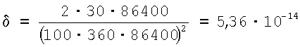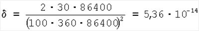 Учитывая, что за одно столетие накопленная неравномерность UT составляет приблизительно 30 с, а расчетная продолжительность земных суток 86400 с, находим