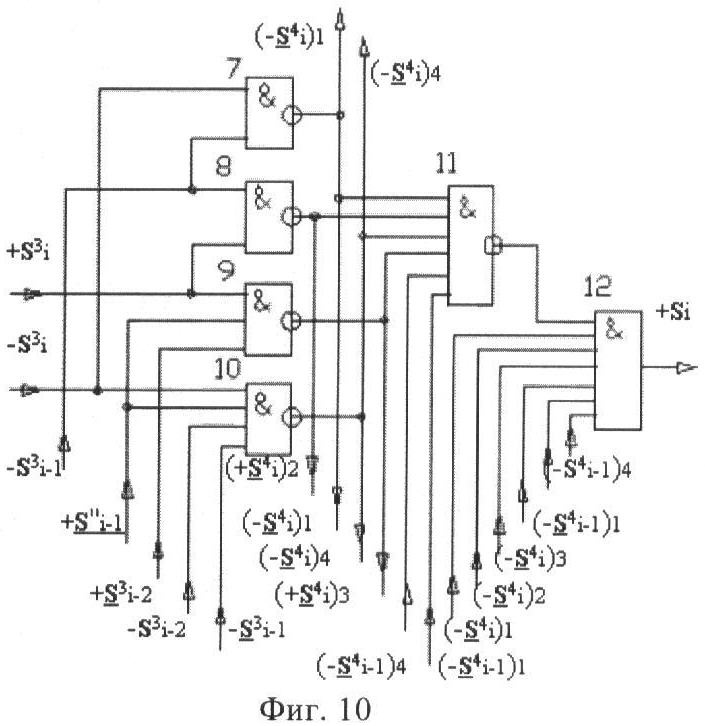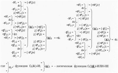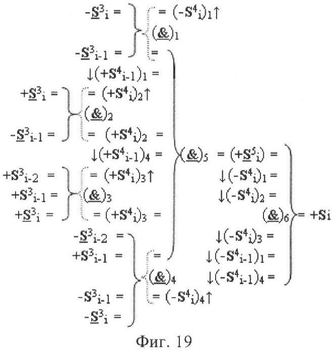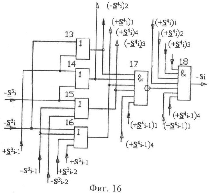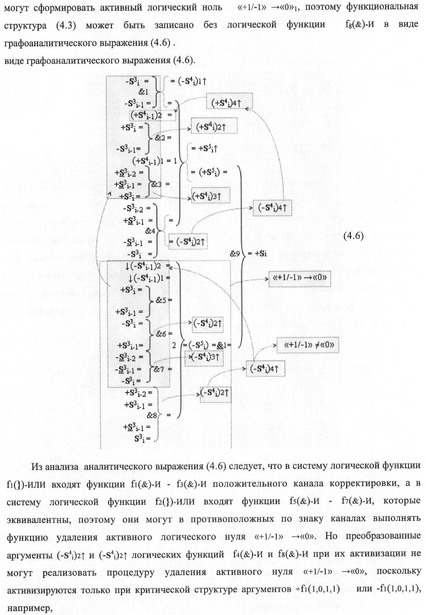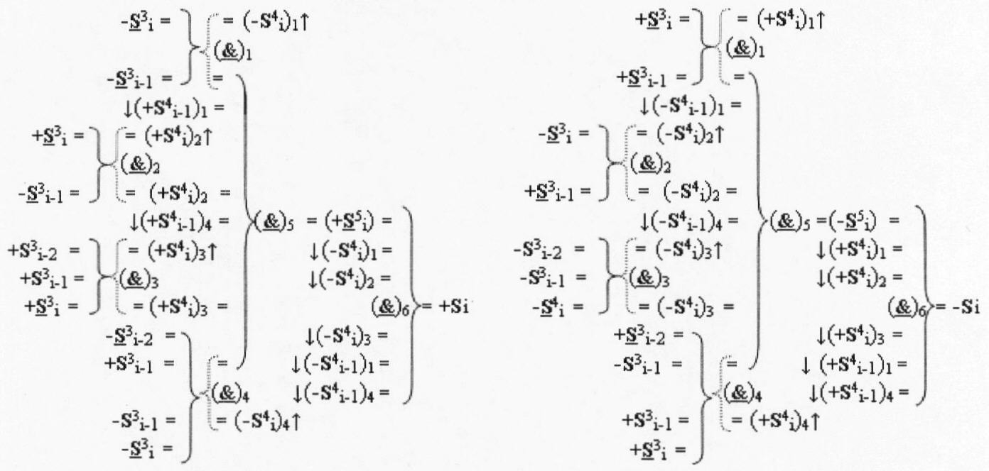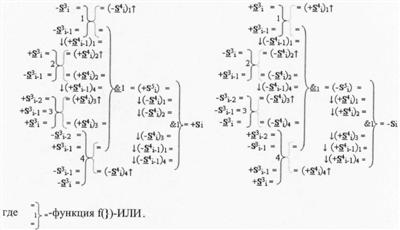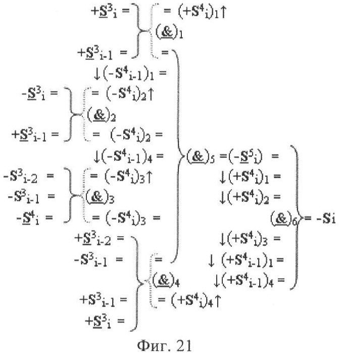 4. Функциональная структура корректировки аргументов промежуточной суммы ±[S3i] параллельного сумматора в позиционно-знаковых кодах f(+/-), условно «i» разряд которой выполнен в виде двух эквивалентных по структуре логических функций положительного и условно отрицательного каналов корректировки аргументов, отличающаяся тем, что в условно «i» разряда каждого канала введены логические функции f1(}&)-ИЛИ-НЕ, f2(}&)-ИЛИ-HE, f3(}&)-ИЛИ-HE, f4(}&)-ИЛИ-НЕ, f5(}&)-ИЛИ-НЕ и f6(}&)-ИЛИ-НЕ, при этом функциональные связи логических функций в структуре сумматора выполнены в соответствии с математической моделью вида