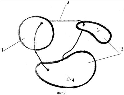 На фиг.1 показаны элементы шаблона, на фиг.2 – набор шаблонов, элементы 1 и 2 которого соединены шнурком 3. Элемент 2 имеет прорези 4.