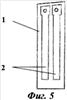 На фиг.1 представлена принципиальная схема известного резонатора (аналога); на фиг.2 – принципиальная схема опорного резонатора, общий вид; на фиг.3 – принципиальная схема опорного резонатора, вид А на фиг.2; на фиг.4 – принципиальная схема опорного резонатора, вид Б на фиг.2; на фиг.5 – голосовая планка для опорного резонатора с двумя язычками, общий вид; на фиг.6 – голосовая планка для опорного резонатора с тремя язычками, общий вид; на фиг.7 – голосовая планка для опорного резонатора с четырьмя язычками, общий вид; на фиг.8 – голосовая планка для опорного резонатора с пятью язычками, общий вид.