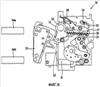 Не описанной ссылочной позицией 43e обозначена удерживающая верхний конец пружины часть, которая удерживает верхний конец движущей пружины 44, и ссылочной позицией 45 обозначена удерживающая нижний конец пружины часть, отступающая от боковой стенки 20a привода 20.