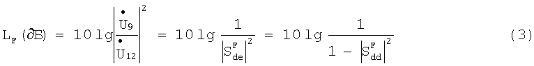 На заключительном этапе расчета к восьмиполюснику фиг.3 применяется условие, согласно которому его плечи 2′ и 3′ работают в режиме холостого хода с коэффициентами отражения Г’2=Г’3=1. Тогда оставшиеся плечи 1′ и 4′ на фиг.3 можно ассоциировать соответственно с плечами «e-e’» и «d-d’» заявляемого ППФ на фиг.1.