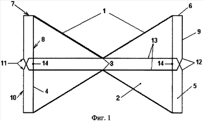 На фиг.1 показан общий вид антенны (повернута на 90°);