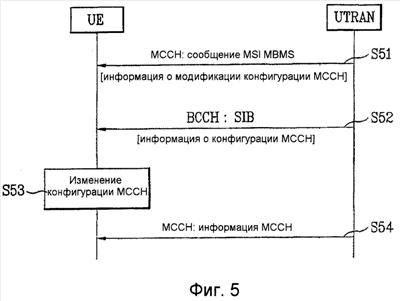 UTRAN осуществляет вещание информации о конфигурации MCCH, используя SIB, который передается через BCCH S52. Здесь, информация о конфигурации MCCH включает в себя параметры для изменения конфигурации MCCH. Далее, параметры могут включат в себя по меньшей мере одно из: длительность периода модификации MCCH для изменения конфигурации, длительность периода повторения MCCH, длительность периода доступа, код формирования канала (например OVSF код или код скремблирования) для SCCPCH, на который отображается MCCH, коэффициент расширения физического канала, на который отображается MCCH, или размер блока данных для передачи MCCH.