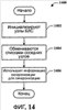 Фиг.14 иллюстрирует другой вариант осуществления методики 1400 инициализации списков соседних устройств в канале управления БГС для облегчения синхронизации терминалов доступа. Данная методика может использоваться в самоконфигурирующемся Беспроводном Контуре сети (Wireless Mesh network). Методика начинается на этапе 1402, когда инициализируют узлы БЛС. По существу в то же самое время, когда инициализируют узлы, они обмениваются на этапе 1404 списками соседних устройств по каналу управления БГС. Эти списки соседних устройств могут включать в себя информацию о точках доступа в окружающей области и/или о мобильных устройствах, которые используют эти точки доступа. Например, списки соседних устройств могут включать в себя сигнал синхронизации, передаваемый мобильным устройством в ответ на осуществление связи по БГС. Протокол, такой как протокол маршрутизации с выбором кратчайшего маршрута (OSPF), может использоваться для обмена списками соседних устройств и создания самых коротких маршрутов распределенным способом. Обмен списками синхронизации на этапе 1404 может включать в себя второй сигнал синхронизации, передаваемый через БЛС и основанный на сигнале синхронизации, посланном в ответ на осуществление связи по БГС. Мобильное устройство или терминал доступа могут использовать информацию синхронизации, сгенерированную БГС, для самосинхронизации на этапе 1406 для связи через БЛС с одним или большим количеством других терминалов доступа, основываясь на втором сигнале синхронизации. Это можно делать непосредственно через ближайшую точку доступа БГС или БЛС, близость которой известна (например, из списка соседних устройств или непосредственно через собственную функцию БГС). Альтернативно, оно может принимать эту информацию от терминала доступа с объединенными функциональными возможностями БГС и БЛС. Например, передача сигнала синхронизации может включать в себя передачу сигнала синхронизации от первого терминала доступа на один или большее количество других терминалов, который синхронизируется с первым терминалом доступа.
