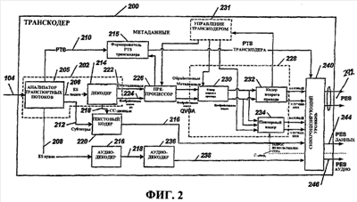 Фиг.2 – это блок-схема примера транскодера системы по фиг.1.