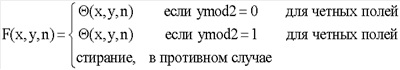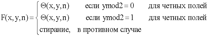 Фиг.40 – это схема, иллюстрирующая процесс пространственно-временного устранения чересстрочной развертки (деинтерлейсинга).