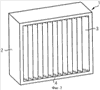 Фиг.2-5 изображают частные варианты выполнения защитного закрывающего элемента 1. Фиг.5 изображает рамку 2, которая может быть изготовлена из пластика или металла, а в целях устойчивости конструкции и по соображениям веса предпочтительно использовать алюминий. В рамке 2 располагается фильтрующий материал 3, сложенный гофрированным (складчатым) образом. Складки располагаются вертикально, чтобы позволить влаге, оседающей на передней части фильтрующего материала, стекать вниз. Как изображено на фиг.2, глубина рамки 2 выбирается таким образом, чтобы длинные боковые кромки сложенного фильтрующего материала 3 не выходили бы за стенку 2с рамки 2, благодаря чему создается воздухонепроницаемое соединение между фильтрующим материалом 3 и рамкой 2, что в свою очередь препятствует пропуску воздуха в обход фильтрующего материала 3.