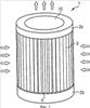 Составной материал используется для образования патронного (кассетного) фильтра, как это изображено на фиг.3. Патронный фильтр содержит сложенный (гофрированный) составной материал, который располагается кругами, так что по меньшей мере одна из его боковых граней закрывается соответствующими закрывающими наконечниками. Патронный фильтр имеет высоту 70 см и диаметр 35 см. Площадь фильтрации сложенного составного материала одного фильтра равна 12,6 м2. В случае нового фильтра через него в течение часа проходит до 1000 м3 воздуха, а падение давление приблизительно составляет 180 Па. Во внутренней части 15 круга этого фильтрующего материала расположена металлическая сетка.