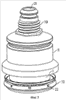 Фиг.10 и 12 показывают третий вариант осуществления настоящего изобретения, в котором свойство упругости уплотняющего элемента обязано геометрической форме самой капсулы. В изображенном варианте осуществления уплотняющий элемент имеет форму уступа 26, т.е. резкого увеличения диаметра боковой стенки 7 капсулы 1. Следует отметить, что геометрическая форма не ограничивается показанным уступом, другие формы также имеют право на существование, если только они обеспечивают уплотняющему элементу свойство упругости или, по меньшей мере, свойство деформироваться.