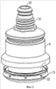 Кольцевой опорный плинтус 18 теперь покрывает конец обода в виде фланца 6 капсулы 1, в то время как зажимная часть 29 зажата между поверхностями 30, 31 аппарата для обеспечения того, чтобы уплотняющий элемент 8 мог свободно отклоняться, а капсула оставалась в положении, когда уплотняющая поверхность 15 элемента в виде раструба произведет определенное давление на уплотняющий элемент 8.