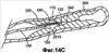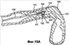 Хотя дистальный участок дуги 110, продолжающийся между первым углублением 151 свода дуги и углублением 141 наконечника, освобождается для выпрямления, проксимальная опора выпуклой поверхности постепенно понижается в проксимальном направлении, пока не вернется к рельефному участку 114, который достигается в расправленном втором состоянии. Это позволяет узлу 122 приложения усилия проволочного направителя 120 проникать дальше дистально в складку 340, как показано in vivo на фиг.14С.