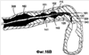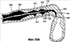 И, наконец, кольцевой выступ 532 захватывают большим пальцем Т и указательным пальцем IND, а другие пальцы F разжимают аналогично тому, как описано выше в связи с фиг.14А и 14В. Тем самым дуга 110 расправляется и выпрямляется, и минует в дистальном направлении второе углубление 142 наконечника, и сферическая головка 122 вжимается для дистального проникания в складку 340 на втором шаге процесса переползания, как показано in vivo на фиг.15В.