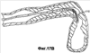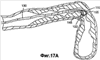 На фиг.16А представлен пример применения красителя 160, не прозрачного для рентгеновского излучения, до преодоления изгиба 161 в закупорке 320. При установлении границ красителем 160 видно, что обнаруженная складка 340 содержит узкий изогнутый просвет, продолжающийся дистально и впереди от сферической головки 122. Оператор будет реагировать на данную конфигурацию сосуда соответствующими действиями по проведению проволоки 120 и вставкой узла 122 приложения усилия как можно дальше в дистальном направлении.