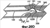 Как пояснялось выше, проксимальное отведение стержня 130 достигалось сдвиганием отверстия 113 в опорной полке дуги 110 по проволоке 120. Данный способ отведения подразумевает, что внутренний диаметр отверстия 113 в опорной полке должен быть достаточно большим, чтобы допускать прохождение через данное отверстие самого широкого размера проволоки 120. В предпочтительном варианте осуществления узел 122 приложения усилия имеет диаметр шире внутреннего диаметра отверстия 113 в опорной полке. Однако для проникания в тонкий сосуд 300 целесообразно выдерживать как можно меньшие размеры дуги 110, опорной полки 112 и отверстия 113 в опорной полке.