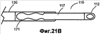 В дальнейшей фазе прогиба кривой дуги, показанной на фиг.20С, дуга 110 дополнительно закрутилась и вкатилась в закупорку 320, с более глубоким закреплением выпуклой поверхности в ткани закупорки, увеличением глубины закрепления АА дуги и углубления 151 свода дуги и асимметричным расширением сосуда 300 радиально наружу. Процесс изгибания дуги заканчивается, когда опорная полка 112 практически упирается в дистальный конец стержня 130.