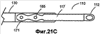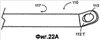 На фиг.21А-21С представлены виды спереди дуги 110 и дистального конца стержня 130, где изображены альтернативные варианты осуществления конфигурации и способа, применяемых для фиксации хвостовика 115 дуги к стержню 130. Хвостовик 115 дуги имеет надлежащую форму для соответствия функциональным требованиям, предъявляемым технологиями изготовления, применяемыми для фиксации дуги 110 к стержню 130. Например, для закрепления хвостовика 115 дуги заклепками 165 к стержню 130, как показано на фиг.21А, для хвостовика 115 дуги достаточно подходит прямоугольная форма 170, но достаточной будет форма 171 песочных часов, показанная на фиг.21С. Однако форма 171 песочных часов, показанная на фиг.21В для фиксации хвостовика 115 дуги к стержню 130 может обеспечивать лучший захват для закрепления с помощью стягивающей трубки 116. Тем не менее, могут быть выбраны другие геометрии формы хвостовика 115 дуги, чтобы лучше соответствовать другим средствам крепления химическим или физическим соединением, например, обжимом или каким-либо видом пайки, пайки твердым припоем, сваркой и диффузионным соединением. Фактически выбор форм хвостовика 115 дуги и средства фиксации хвостовика 115 дуги к стержню 130 не ограничен.