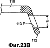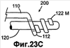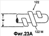 Как показано на фиг.23А, узел 122 приложения усилия выполнен с ограниченной по длине охватываемой винтовой резьбой 122М, расположенной на дистальном конце проволоки 120, вместо сферической головки 122В, показанной на фиг.2 и 3. Опорная полка 112, показанная на фиг.23В, выполняет функцию охватывающей винтовой резьбы 113F или может быть снабжена данной резьбой вместо цилиндрического отверстия 113 в опорной полке для вмещения в нее охватываемой винтовой резьбы 122М при сопряжении и при выдвижении через нее.