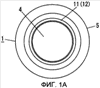 Фиг.1А-1С показывают ультразвуковой преобразователь согласно осуществлению изобретения; Фиг.1А – горизонтальная проекция ультразвукового преобразователя; Фиг.1В – сечение ультразвукового преобразователя, подключенного при помощи клемм для электропитания; Фиг.1С – увеличенное сечение основных компонентов, показанных на Фиг.1В;