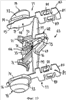 Также освобождающая кнопка 46 содержит закрывающий элемент 53, который выступает из выемки 45 так, чтобы до него мог достать палец пользователя бритвы. Закрывающий элемент 53 защелкивается на толкателе 47 с помощью крючков 54, зацепляющихся за соответствующие поверхности 55, выполненные на основной части 48 толкателя 47.