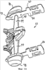 Также направляющее средство содержит две параллельные удлиненные верхние рейки 33, 34, выступающие от внутренней верхней поверхности 35 верхнего корпусного элемента 10 и расположенные вдоль боковых сторон направляющей планки 21.