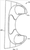 Передняя часть 79 каждого плоского упругого элемента 80 расположена продольно от одного до другого края овального бокового отверстия 86, образованного рядом с каждой концевой частью рукоятки дополняющими друг друга вырезами 87, 88 в корпусных элементах 9, 10.