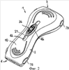 Как показано на фиг.8, платформа 8 содержит удлиненный дугообразный пластинчатый элемент 11, кривизна которого по существу совпадает с кривизной рукоятки 2. Платформа 8 содержит продольное ребро 12 жесткости и два отстоящих друг от друга поперечных ребра 13, 14 жесткости, которые выступают от верхней поверхности 15 пластинчатого элемента 11, и также полый центральный корпус 16, образованный, с одной стороны, парой расположенных напротив друг друга поперечных стенок 17, 18, выступающих над верхней поверхностью 15, и, с другой стороны, парой расположенных напротив друг друга продольных стенок 19, 20, также выступающих над верхней поверхностью 15 и связанных с поперечными стенками 17, 18.
