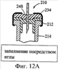 36. Способ по п.28, отличающийся тем, что в нем дополнительно содержит стадию, на которой ориентируют, по крайней мере, либо ось пузырька, либо ось элемента для инъекций под острым углом по отношению друг к другу, так, что путь введения элемента для инъекций в заглушке будет расположен под острым углом по отношению к оси пузырька.