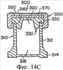 12. Пузырек в сборе по п.1, отличающийся тем, что дополнительно скомбинирован с держателем для пузырька, содержащим установочную поверхность для пузырька, которая входит в контакт со средней частью пузырька, верхнюю поверхность, которая расположена по одну сторону от установочной поверхности, и нижнюю поверхность, которая расположена по другую сторону от установочной поверхности, при этом верхняя часть пузырька входит в контакт с верхней поверхностью держателя для того, чтобы в значительной степени предотвратить аксиальное движение пузырька по отношению к этой поверхности, а основание пузырька входит в контакт с нижней поверхностью держателя для того, чтобы в значительной степени предотвратить аксиальное движение пузырька по отношению к этой поверхности.