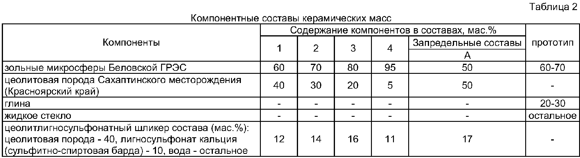 1. Способ изготовления конструкционно-теплоизоляционной строительной керамики, включающий подготовку минеральной связующей добавки, увлажнение и пластификацию зольного компонента, смешивание связующей добавки с пластифицированным зольным компонентом, полусухое прессование изделий и обжиг, отличающийся тем, что пластифицирующую добавку готовят по шликерному способу совместным мокрым помолом цеолитовой породы с лигносульфонатом кальция (сульфитно-спиртовой бардой) в шаровой мельнице до остатка на сите 0088 не более 2-3%, осуществляют пластификацию смешиванием зольных микросфер с полученным цеолитлигносульфонатным шликером плотностью 1,20-1,25 г/см3, с последующим введением сухой минеральной связующей добавки в виде цеолитовой породы, высушенной при температуре 110-150°С и измельченной до размеров частиц менее 0,5 мм, формование изделий из полученной сырьевой смеси осуществляют полусухим прессованием под давлением 20-25 МПа, а обжиг проводят при температуре 980±20°С. 2. Состав для изготовления конструкционно-теплоизоляционной строительной керамики, содержащий зольные микросферы, связующую минеральную добавку и увлажняющую пластифицирующую добавку, отличающийся тем, что в качестве связующей минеральной добавки используют цеолитовую породу, в качестве увлажняющей пластифицирующей добавки используют цеолитлигносульфонатный шликер при следующем соотношении компонентов, мас.%: