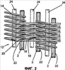 Витки спиралей 14 и 16 могут быть наклонены определенным образом. Например, витки спирали 14 могут быть наклонены влево, как показано стрелкой 20, а витки спирали 16 могут быть наклонены вправо, как показано стрелкой 18. Спирали 14 и 16 соединены друг с другом при помощи соединительного элемента 2. В частности, соединительные элементы 2 могут быть вставлены или иным способом размещены внутри прохода 22, образованного перекрывающимися спиралями 14 и 16.