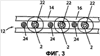 На фиг.2 и 3 показан вид сверху и поперечный разрез спиральной ткани 12 соответственно. Как видно, такая ткань 12 может включать спирали 14 и 16, которые в основном расположены в поперечном направлении относительно продольной оси ткани (то есть оси, параллельной направлению движения ткани).