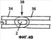 На фиг.4а показан поперечный разрез соединительного элемента 2, размещенного в петле спиральной ткани 112 перед воздействием эксплуатационного сжатия или растяжения. В этом случае витки 34 и 36 спиралей перекрываются и образуют проход 38, имеющий в основном круглую или овальную форму и высоту Н1. При сжатии ткани 112 в ходе эксплуатации, например при каландровании, витки 34 и 36 и соединительные элементы 2 могут деформироваться или изменяться таким образом, чтобы иметь высоту Н2, как показано на фиг.4b.